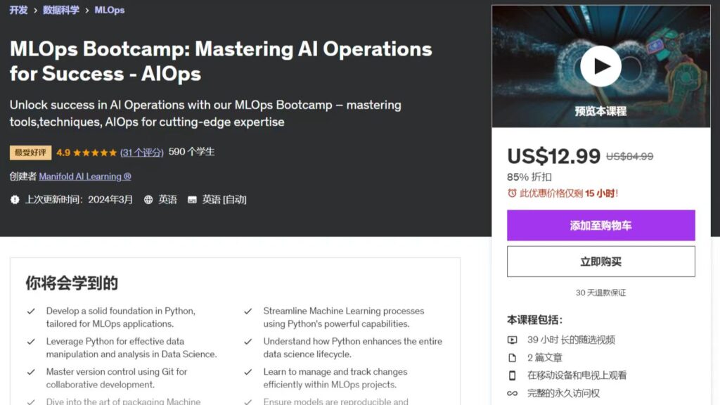 - 课程:MLOps Bootcamp: Mastering AI Operations for Success -AIOps