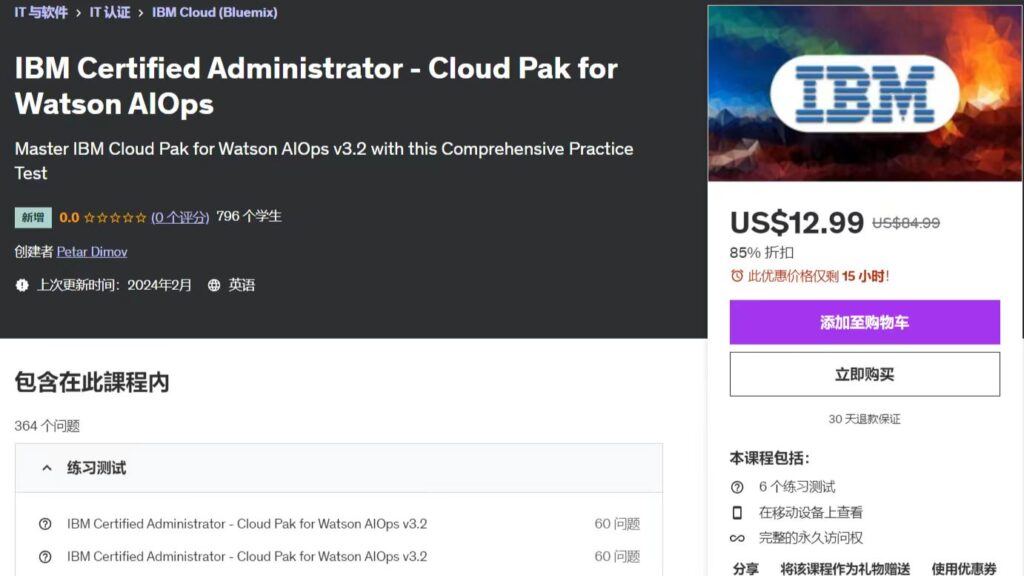 - 课程:IBM Certified Administrator – Cloud Pak for Watson AIOps