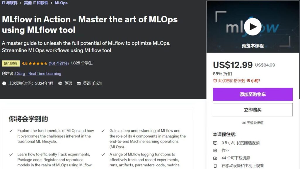 - 课程:MLflow in Action – Master the art of MLOps using MLflow tool