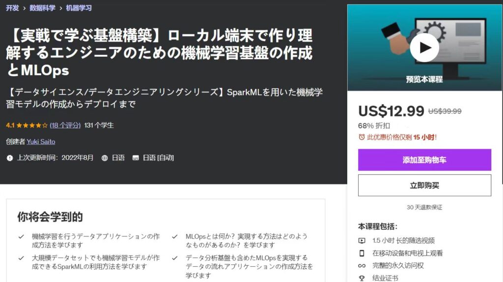 - 课程:【実戦で学ぶ基盤構築】ローカル端末で作り理解するエンジニアのための機械学習基盤の作成とMLOps
