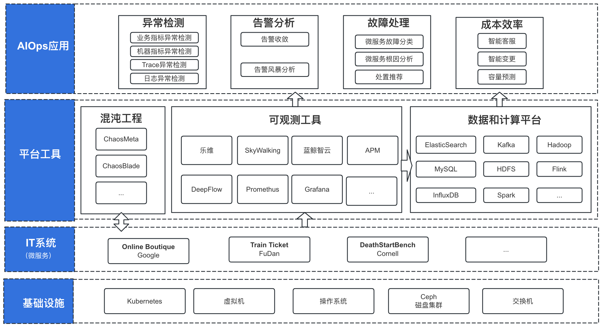 在线评测基准(AIOps Live Benchmark)是在真实的IT系统上,通过混沌工程模拟真实的运维场景,通过可观测工具获实时数据,在线评测AIOps应用,最终提供权威的评测基准和真实数据。